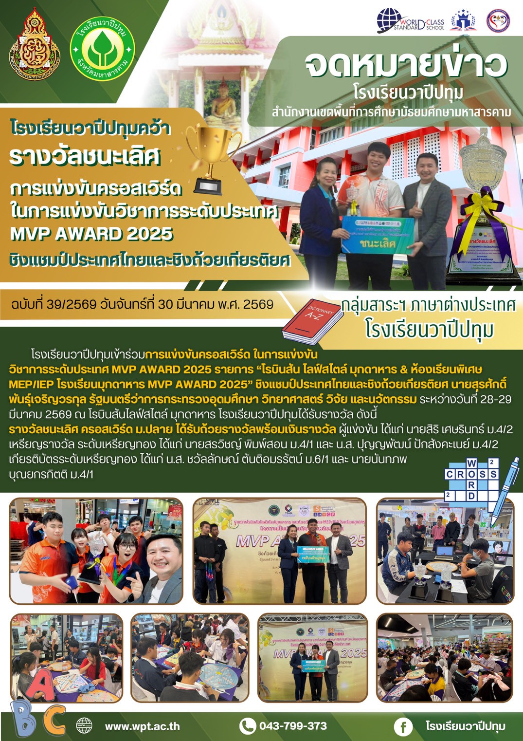 รางวัลชนะเลิศ การแข่งขันครอสเวิร์ด ระดับประเทศ MVP AWARD2025