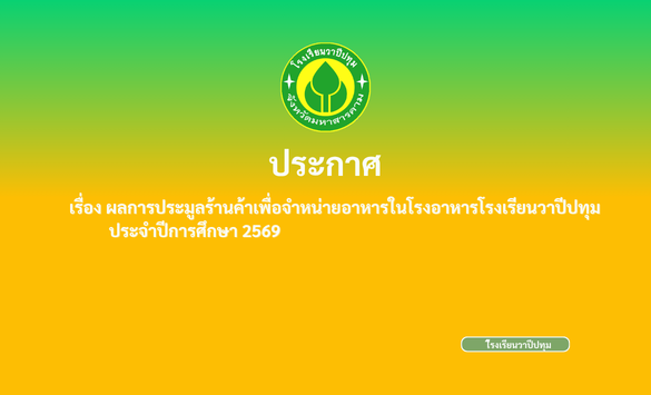 ผลการประมูลร้านค้าเพื่อจำหน่ายอาหารในโรงอาหาร ประจำปีการศึกษา 2569